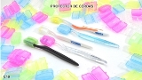 | Acople perfecto para cualquier cepillo dental Práctico protector de cerdas con un diseño provisto de buena ventilación para prevenir olores y la proliferación de bacterias Bolsa por 24 und / Paca por 960 protectores / Bombonera x 230 unds. |