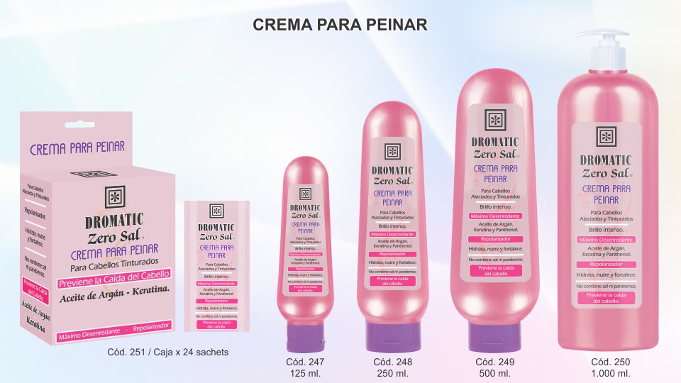 Ha sido formulado con ingredientes de última tecnología para aplicar sobre todo tipo de cabellos sean naturales o procesados con químicos, dejándolos protegidos, con sensorial suave, sedoso y agradable al tacto. Ideal para obtener un peinado rápido, flexible, natural y duradero.