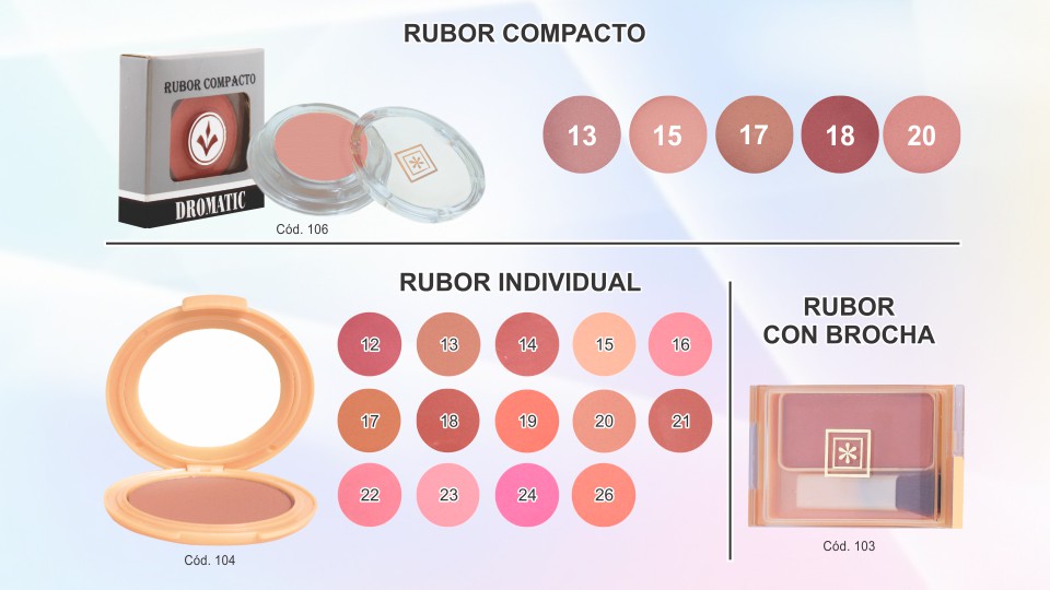 Es el toque final de su maquillaje, realza las facciones, iluminando el contorno de su rostro dejando un acabado sedoso, fresco y natural brindando un aspecto saludable y radiante. Amplia gama de preciosos tonos de sutiles a vibrantes.